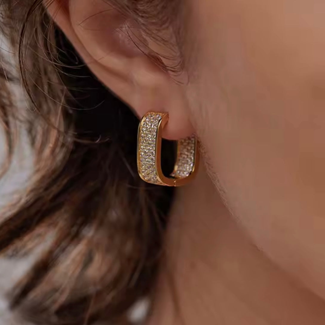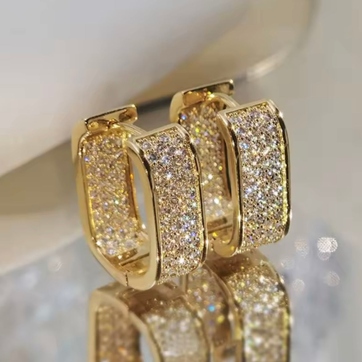 Moderne Creolen mit funkelnden Zirkonia-Steinen, die sowohl innen als auch außen besetzt sind. Diese eleganten Ohrringe bestehen aus hochwertigem, 18k vergoldetem Edelstahl und bieten eine perfekte Mischung aus Glanz und Langlebigkeit. Sie präsentieren sich als Statement-Piece, das jeden Look aufwertet. Die sorgfältig platzierten Zirkonia-Steine sorgen für einen strahlenden Glanz, der von allen Seiten sichtbar ist.