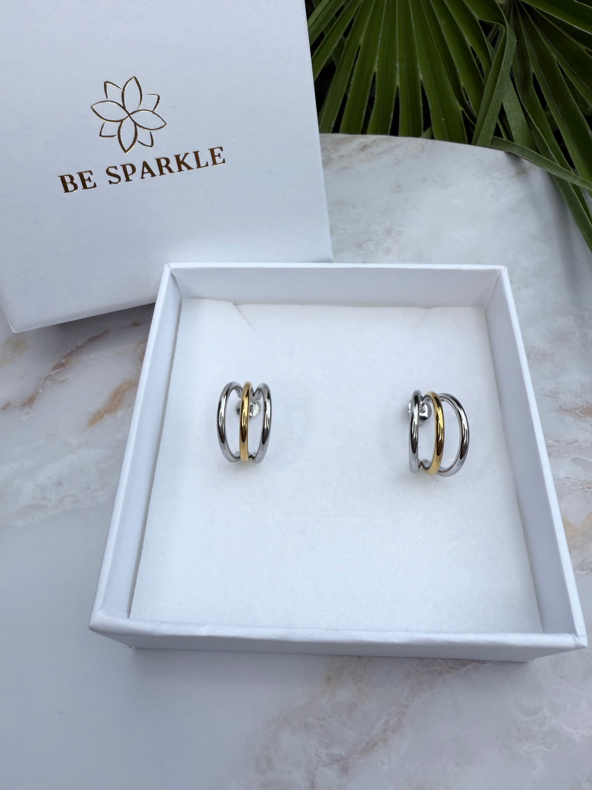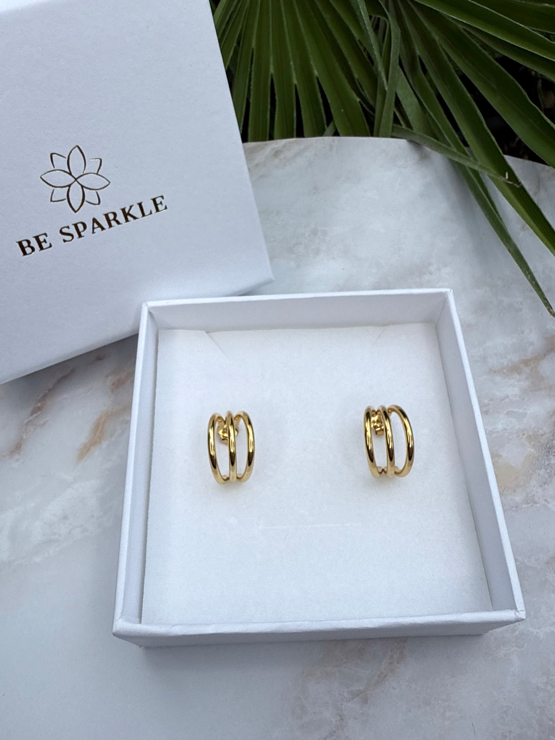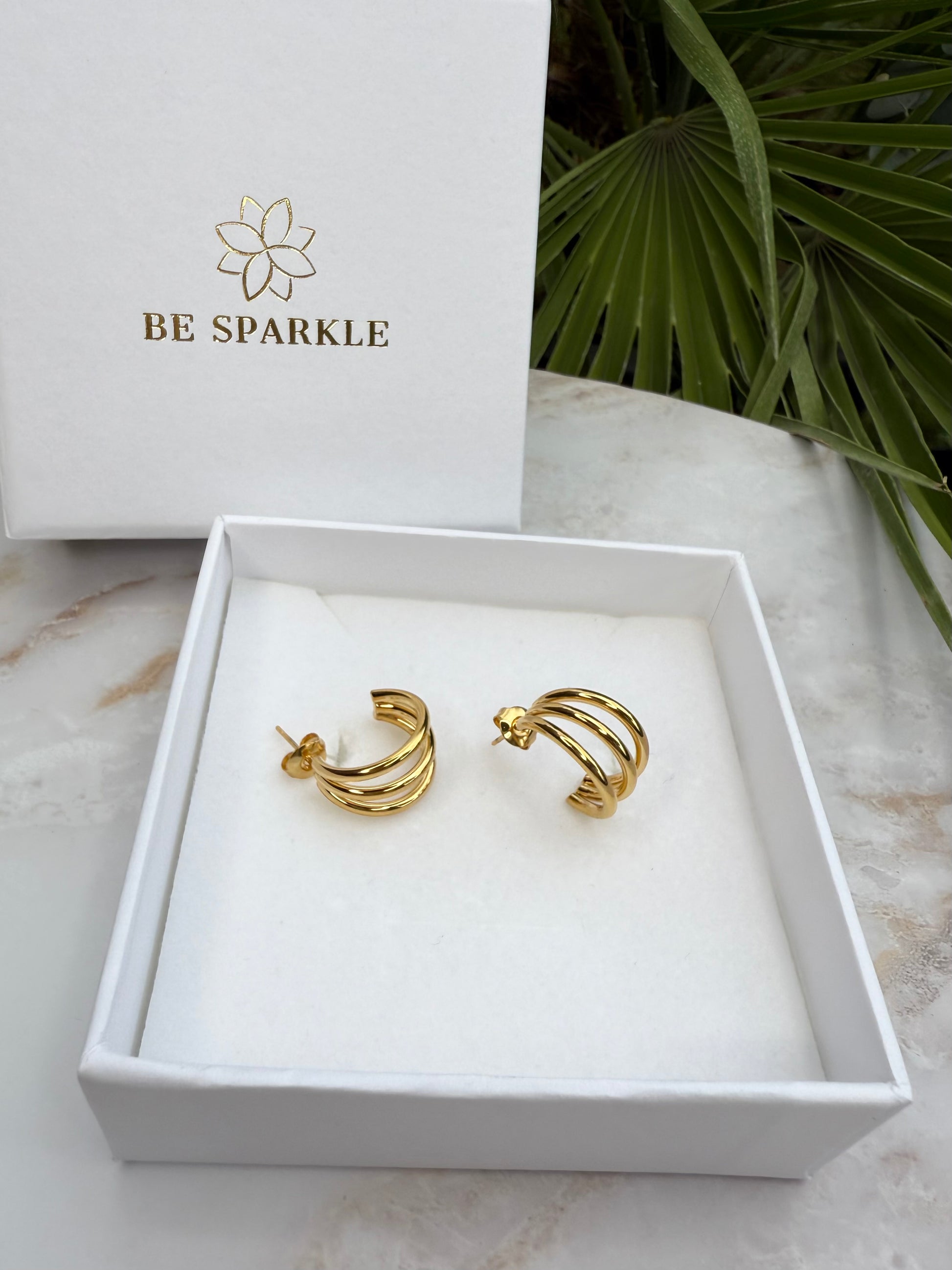Die stilvollen Nelli Ohrringe präsentieren sich in eleganter Creolenform und bestehen aus hochwertigem Edelstahl mit einer edlen Goldbeschichtung. Das moderne, dreireihige Design verleiht den Ohrringen eine elegante und zugleich trendige Ausstrahlung. Leicht, langlebig und vielseitig kombinierbar – perfekt für jeden Anlass und ein Must-have für alle, die zeitlosen Schmuck lieben.