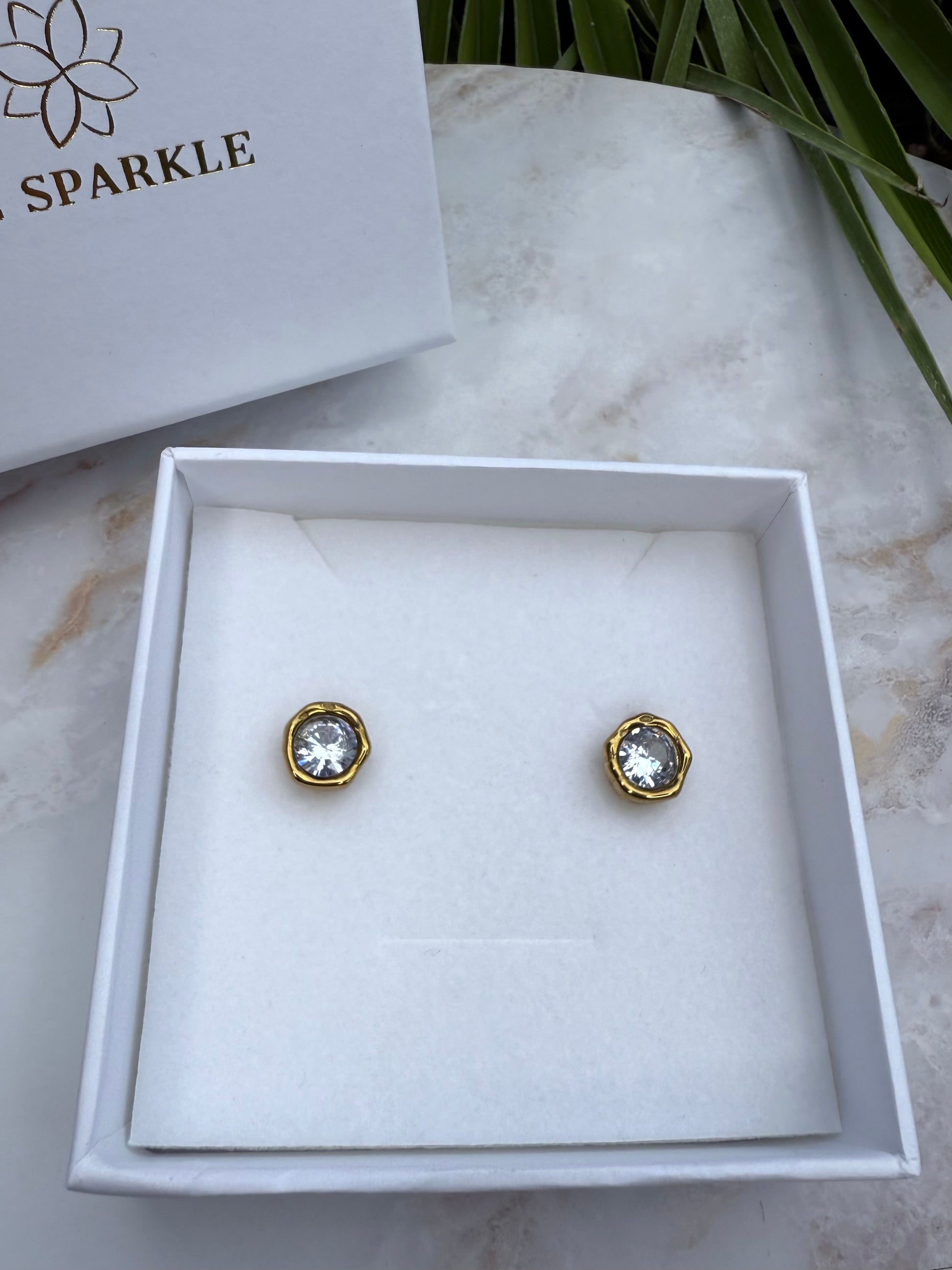 Kleine Glitzer-Ohrstecker, die garantiert alle Blicke auf sich ziehen! Mit ihrer runden Form und funkelnden Oberfläche setzen diese Ohrringe strahlende Akzente. Die elegante Goldumrandung verleiht ihnen einen edlen Touch und macht sie zum perfekten Hingucker für jeden Tag. Ob zum Ausgehen oder als subtiles Glitzern im Alltag – diese Stecker bringen Glamour in deinen Look!